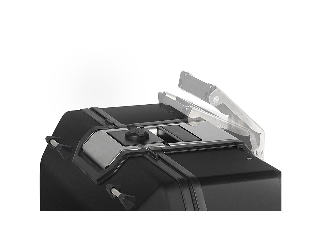 A TERRA TR55 felső bőrönd két felhajtható bukósisak befogadására alkalmas, és mindössze 5,4 kg-os súlyával a piacon kapható legkönnyebb alumínium bőrönd. 100%-ban Barcelonában tervezték és gyártották. Innovatív kialakítása nagyszerű kiegészítője bármilyen kalandmotornak. A TERRA Pure Black prémium matt fekete festékbevonatot kínál a bőröndön. A csúcskategóriás TERRA TR55 bőrönd ABC-díjat kapott a kalandmotorokon való használat kulcsfontosságú szempontjaira összpontosító tervezéséért. A TR55 aerodinamikus, integrált konstrukcióval rendelkezik, amely edzett alumíniumötvözetből készült, amely egy erősebb és könnyebb alumínium típus, és lehetővé teszi a falvastagság mindössze 1,2 mm-re csökkentését. Ez minimális súlyú és maximális ellenállású bőröndöt eredményez. Mint minden TERRA alumínium bőrönd esetében, a szabadalmaztatott "TERRA Lock System" is megtalálható benne. Az integrált zár fogantyúval ipari AISI 304 rozsdamentes acélból készült. Ez a kialakítás gyors, egykezes használatra lett tervezve, és lehetővé teszi bármely motoros számára, hogy könnyen kinyissa, bezárja, eltávolítsa és hordozza a bőröndöt. AISI 304 rozsdamentes acél horgok is kaphatók további rakomány rögzítésére. A gumitömítésekkel ellátott táskakeret védi a belső teret a kedvezőtlen időjárási viszonyoktól - a táska vízálló. Ezenkívül a belső habalap csökkenti a rakomány mozgását a belsejében. A TR55 táska kulcsai és zárbetétje a SHAD prémium változata, olyan rendszerrel, amely csökkenti a lopás lehetőségét, valamint egy olyan fedéllel, amely megakadályozza a por bejutását. A külső AISI 304 rozsdamentes acél horgoknak köszönhetően további rakomány hozzáadása lehetséges. Motorkerékpárra való felszereléshez meg kell vásárolni a SHAD Top Master rögzítőkészletet és egy lemezt (a táskacsomag nem tartalmazza). Három lemezopció áll rendelkezésre: standard műanyag lemez (D1B591PA), alumínium lemez (D1BTRPA) vagy fekete alumínium lemez (D1BTRPA2). A zárbetétek könnyen cserélhetők: ugyanazzal a kulccsal nyitható a felső és az oldalsó doboz. Minden TERRA jobb oldali táska csomagja tartalmaz egy harmadik zárbetétet a felső dobozhoz. Opcionális kiegészítők (külön megvásárolhatók): Kétrészes háttámla (D0RI75) és bővíthető belső táska (X0IB10).Kiegészítő paraméterek