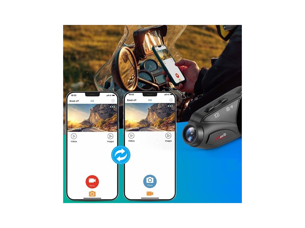 Bluetooth Intercom MaxTo M3 egy csúcskategóriás termék, amely a kihangosító, a kaputelefon és a SONY Full HD kamera funkcióit ötvözi, ideális azon motorosok számára, akik szeretnének kapcsolatban maradni, és megörökíteni a vezetési élményeiket ugyanabban az időben. Ez a kaputelefon legfeljebb 6 eszköz csatlakoztatását teszi lehetővé, míg a kommunikáció akár 1000 méteres távolságban működik. Ezenkívül könnyedén párosíthatja mobiltelefonokkal, Bluetooth fejhallgatóval, GPS-navigációval vagy zenelejátszóval, így zenét játszhat, hívásokat fogadhat vagy navigációt figyelhet anélkül, hogy le kellene vennie kesztyűjét vagy le kellene szállnia a motorkerékpárról. Az előny az, hogy egyszerre akár két telefont is csatlakoztathat, valamint támogatja a DSP és az A2DP funkciókat is.