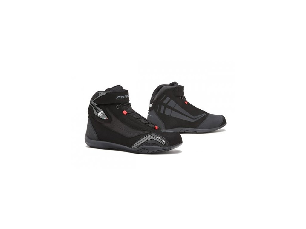 A fekete FORMA GENESIS motoros csizma pontosan megfelelő magasságban védi a bokáját. Három anyag kombinációja - mikroszálas, rendkívül tartós textil és bőr. Gumi talp. Természetesen a vezetés közbeni biztonságot növelő védőelemeket is tartalmazzák ezek a cipők. Ide tartozik a fröccsöntött műanyag (TPU) bokavédelem, a váltóerősítés és a PP Mid Dual Flex technológiás talp ütéselnyelő EVA középtalppal. A cipő hátulján fényvisszaverő elem is található.
