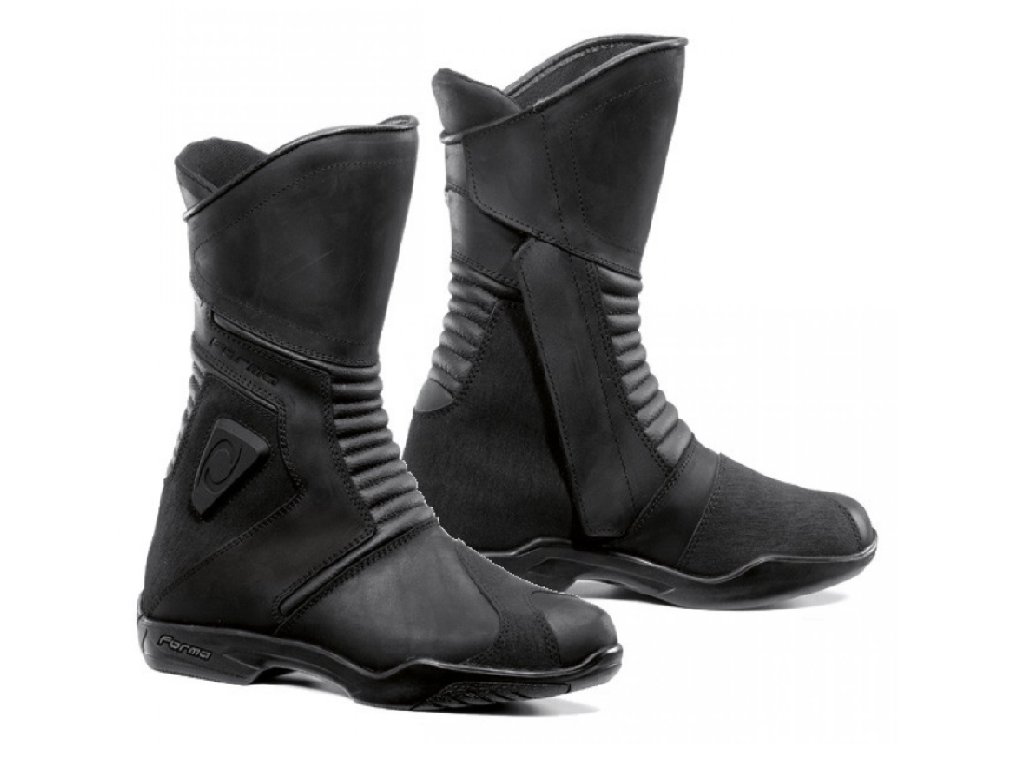 Forma VOYAGE WP fekete bőr motoros csizma vízálló Drytex membránnal kombinálva, amely garantálja a csizma kiváló légáteresztő képességét. Az olyan biztonsági elemek mellett, mint a sarok-, orr-, boka- és lábszár-erősítés + műanyag bokaerősítés, ezek az olasz motocsizmák olajálló, csúszásmentes talppal is rendelkeznek. A TPU Dual Flex rezgéscsillapító EVA nylon középtalp, amelynek rugalmas elülső része van, a cipő köztes részébe került. Az elülső rész rugalmassága növeli az érzékenységet és a stabilitást a motorkerékpáron.