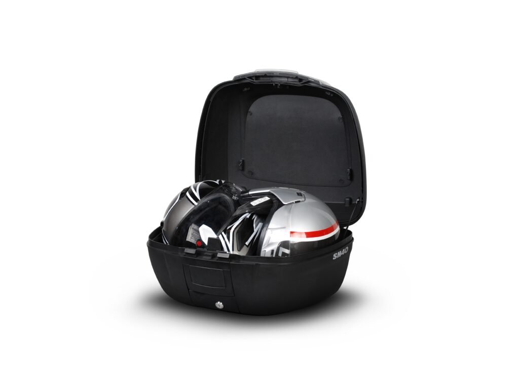 SH40 felső bőrönd egy teljes sisak vagy két bukósisak (teljes és nyitott) befogadására alkalmas. Az SH40 egy kiváló minőségű, edzett polipropilénből készült felső bőrönd. Ez a bőrönd ellenáll a szélsőséges hőmérsékleteknek, hónak és esőnek, miközben megvédi a tartalmát az ütésektől és a sérülésektől. A 40 literes űrtartalom elegendő helyet biztosít egy teljes sisak és kesztyű vagy 2 nyitott bukósisak számára. A Handle Lock rendszer dupla zárat kínál, amely egyrészt rögzíti a bőröndöt a motorkerékpárhoz, másrészt zárja a felső bőröndöt. A bőrönd fogantyúval is rendelkezik, amely megkönnyíti a hordozást, amikor leveszik a motorkerékpárról. A bőrönd pántokkal rendelkezik, amelyek biztosítják, hogy a benne lévő tartalom ne mozduljon el. Mint minden SHAD felső bőrönd, ez a bőrönd is egy kézzel nyitható és zárható, nincs szükség kulcsra a nyitáshoz vagy záráshoz. A kulcsra csak akkor van szükség, ha zárni szeretnénk a bőröndöt. Ha a dizájnra helyezi a hangsúlyt, biztosan értékelni fogja a bőrönd fedelének különböző színváltozatai közül való választás lehetőségét. Választhat festés nélküli változatot is, ahol a színt saját ízlése szerint szabhatja testre. Opcionális kiegészítőként háttámlát és féklámpát vásárolhat a bőröndhöz. A háttámla (D0RI60) nagyobb kényelmet garantál az utasnak. A féklámpa (D0B40KL) egy energiatakarékos LED-es lámpa, amely nagyon könnyen felszerelhető. Ez a lámpa növeli a közlekedésbiztonságot, mivel a motorkerékpár sokkal jobban láthatóvá válik hátulról ezzel a lámpával. Mint minden SHAD tetőcsomagtartó (kivéve a TR48/TR37), az SH40 táska is egy lemezzel és egy rögzítőcsavar-készlettel van ellátva.Kiegészítő paraméterek