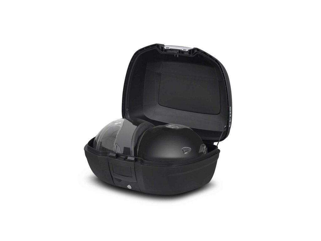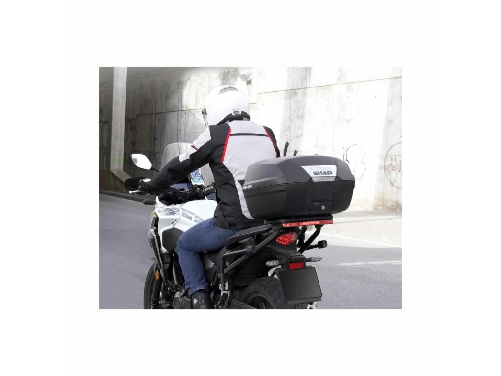Az SH44 egy felső bőrönd, amely 2 teljes arcvédő bukósisak tárolására alkalmas, ideális motorkerékpárokhoz és nagyméretű robogókhoz. A biztonságot a "dupla zárrendszer" biztosítja, amelynek köszönhetően a bőrönd a motorkerékpárhoz rögzíthető, és a tárolórekeszhez való hozzáférés is zárva van. A négyzet alakú formát az utazóbőröndök ihlették, és lehetővé teszi nagy mennyiségű rakomány szállítását. A bőrönd speciális gumitömítéssel rendelkezik, amely javítja a tömítést, és véd a víz és a por ellen. A bőröndhöz kiegészítőket is választhat - háttámlát, belső táskát és féklámpát.Kiegészítő paraméterek