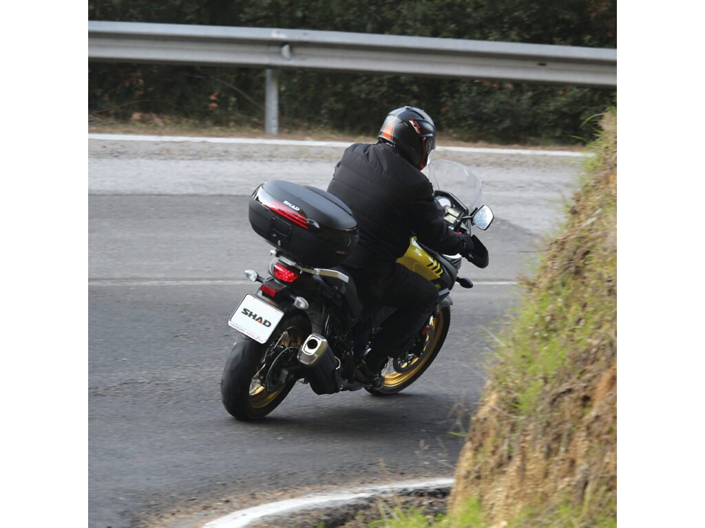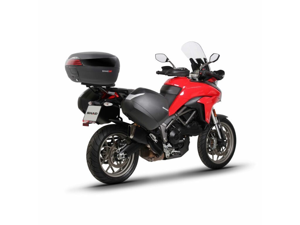 SH46 felső bőrönd 2 bukósisak befogadására alkalmas Az SH46 felső bőrönd egy robusztus felső bőrönd, amely kiváló minőségű, edzett polipropilénből készült. Ez a bőrönd ellenáll a szélsőséges hőmérsékleteknek, a hónak és az esőnek, miközben megvédi a tartalmát az ütésektől és a sérülésektől. Térfogata 2 teljes bukósisak és egyéb utazási felszerelés számára alkalmas. Lekerekített formákkal és 3 sor piros fényvisszaverővel rendelkezik fekete alapon. Ideális méretű városi közlekedéshez, de hosszabb utakra is, ezért robogókhoz, valamint közepes és nagyobb motorkerékpárokhoz is alkalmas. A Handle Lock biztonsági rendszer dupla zárat kínál, amely egyszerre rögzíti a bőröndöt a motorkerékpárhoz és zárja a felső bőröndöt. A bőrönd fogantyúval is rendelkezik, amely megkönnyíti a hordozást, amikor leveszik a motorkerékpárról. A bőrönd pántokkal rendelkezik, amelyek biztosítják, hogy a benne lévő tartalom ne mozduljon el. Mint minden SHAD felső bőrönd, ez is egy kézzel nyitható és zárható, nincs szükség kulcsra a nyitáshoz vagy záráshoz. A kulcsra csak akkor van szükség, ha zárni szeretnénk a bőröndöt. Opcionális kiegészítők: háttámla, belső táska, felső csomagtartó és féklámpa. A háttámla (D0RI50) nagyobb kényelmet garantál az utas számára. A felülről nyíló és külső zsebbel ellátott belső táska (X0IB00) tökéletes kiegészítő, ha biztonságosan és kényelmesen kell szállítania a rakományt. Kiváló minőségű anyagokból készült. A felső rács (D0PS00) növeli a bőrönd kapacitását, miközben megtartja a maximális terhelhetőséget. Speciális hevederekkel is rendelkezik a rakomány rögzítéséhez és megtartásához. A féklámpa (D0B40KL) egy energiatakarékos LED-es lámpa, amely nagyon könnyen felszerelhető. Ez a lámpa növeli a biztonságot, mivel a motorkerékpár hátulról sokkal jobban láthatóvá válik. Mint minden SHAD felső bőrönd (a TR48/TR37 kivételével), az SH46 bőröndhöz is tartozik egy lemez és egy készlet rögzítőcsavar.Kiegészítő paraméterek