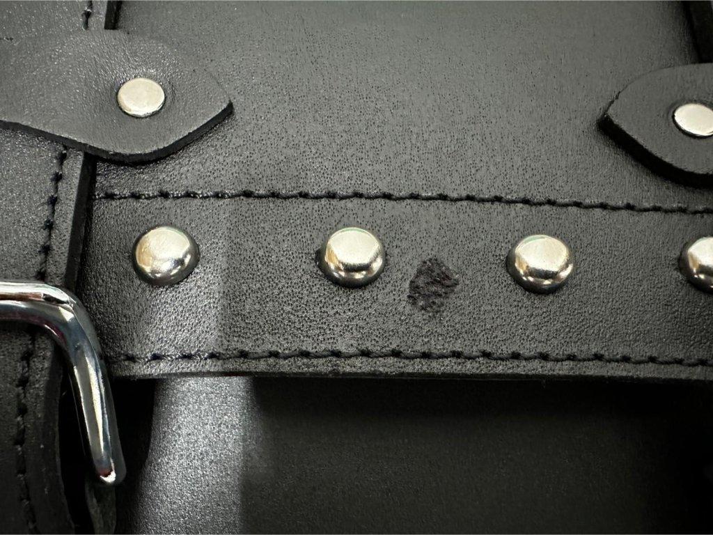 Motorkerékpár tok marhabőrből készült szegecsekkel, vastagsága 2,8 - 3,2 mm, vízlepergető bevonattal.