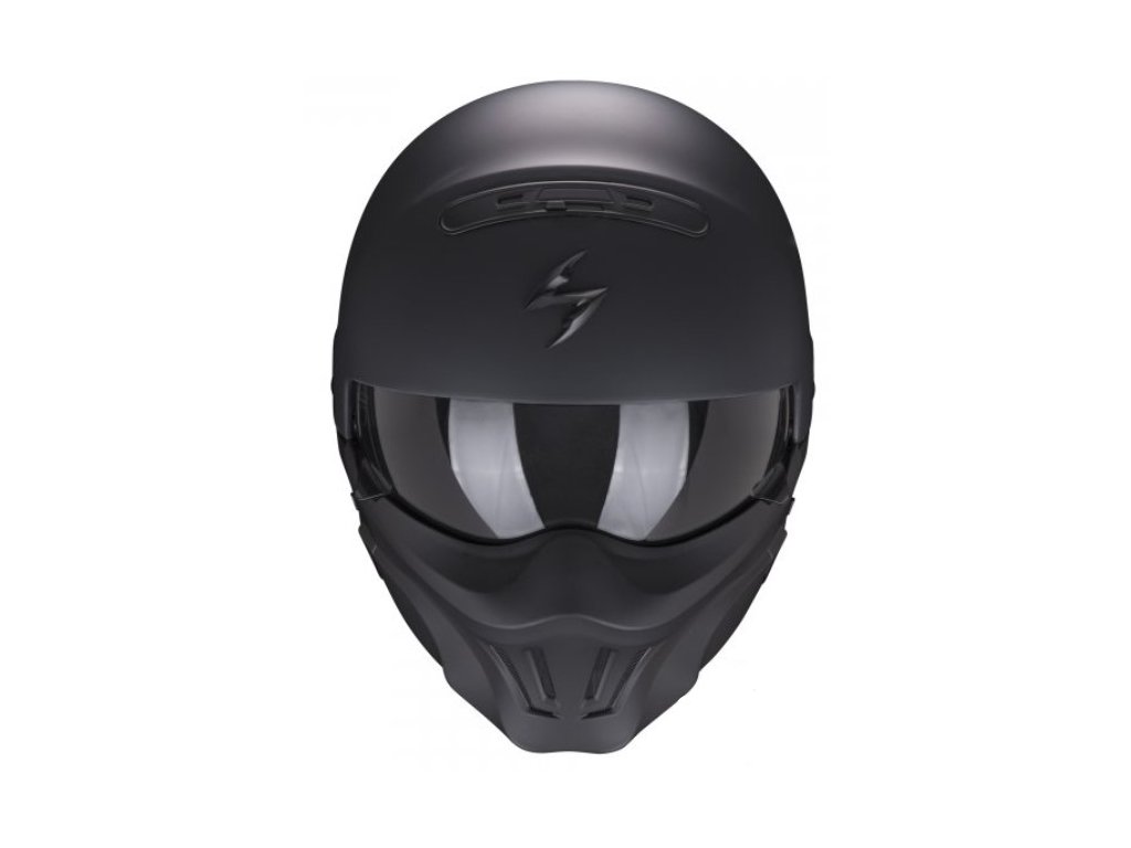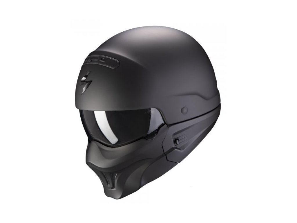 SCORPION EXO-COMBAT EVO motoros sisak tömör fekete, matt héja hőre lágyuló műanyagból készült. A KwickWick2 belseje hipoallergén, megszabadítja az izzadságot az arcról és a fejről, nagyon kényelmes, teljesen levehető és mosható. Éppen ellenkezőleg, a KwiFit rendszer lehetővé teszi az általánosan használt dioptriás szemüvegek túlnyomó többségének használatát összecsukható füstszűrővel ellátott sisakban. Lehetőség van átlátszó, tükör arany vagy ezüst belső napellenző vásárlására is. A rögzítést mikrometrikus csat biztosítja. A sisakot az agresszívabb megjelenésű, levehető állrész uralja, valamint a felső és az áll szellőzése a jobb légáramlás érdekében. A héj két méretben kapható (XS-L és XL-XXL). Súlya körülbelül 1300 g az M méretnél. Teljes ECE-tanúsítvány 22.05.