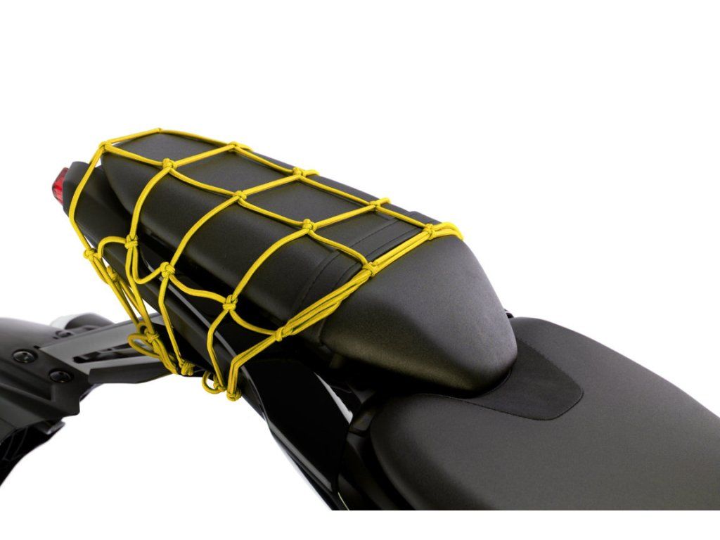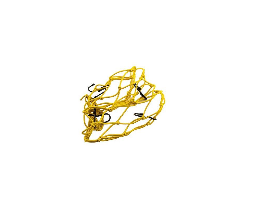 Sárga rugalmas háló, amely tökéletes kiegészítő rakomány szállításához motorkerékpáron. A háló méretei 350x350 mm, és nagy ellenállóképességű és rugalmasságú anyagból készült. Ez lehetővé teszi, hogy alkalmazkodjon a különféle csomagok formájához. Kerületén 6 fémhorog található, amelyek lehetővé teszik a háló gyors és biztonságos rögzítését. A horgok műanyaggal vannak bevonva, hogy megakadályozzák a motorkerékpár karcolódását.Kiegészítő paraméterek