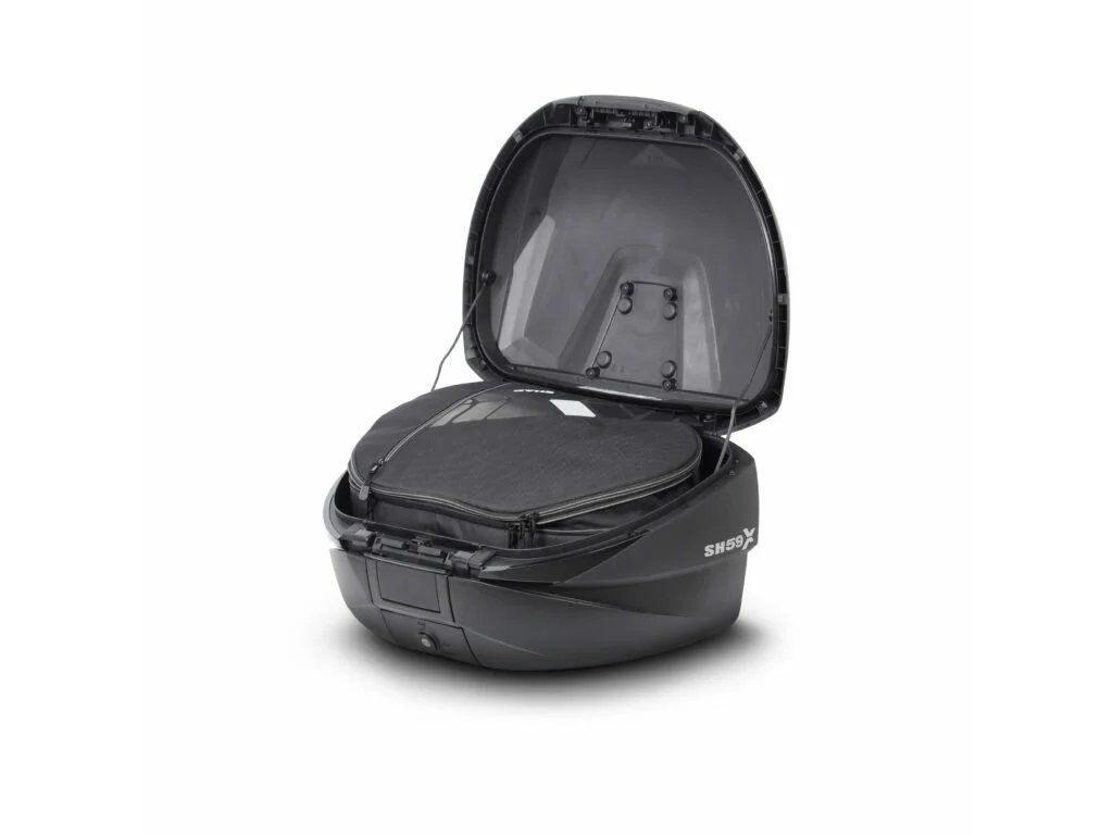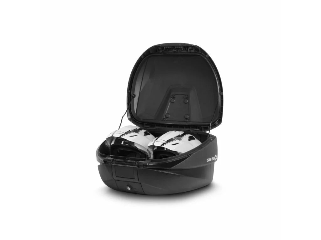 SH59X felsőtáska alumínium fedéllel (bővíthető koncepció) Az SH59X egy egyedülálló motoros felsőtáska a piacon. Innovatív kialakításának köszönhetően néhány másodperc alatt 3 különböző pozícióba állítható a térfogat (46, 52 és 59 liter), így akár 2 XXL bukósisak is tárolható benne anélkül, hogy oldalra kellene tenni őket, plusz utazási kiegészítők. A táska belsejében rögzítőpántok találhatók, amelyek biztosítják, hogy a rakomány ne mozduljon el menet közben. A táska felső fedele 0,8 mm vastag alumíniumból, a többi része pedig megerősített polipropilénből készült. Kialakítása nagy merevséget és ellenállást garantál, miközben minimális súlyt tart fenn. Ehhez a táskához kiegészítőként egy belső, bővíthető táska (X0IB10) is megvásárolható. Ez a felső nyílással és külső zsebbel rendelkező táska tökéletes kiegészítő, ha biztonságosan és kényelmesen kell szállítania a rakományát. Kiváló minőségű anyagokból készült. Az SH59X felsőtáska maximális biztonságot nyújt az innovatív, hermetikus "Smart Lock System" zárnak köszönhetően, amely automatikusan összecsukható fogantyúval és három pozíciójú hermetikus zárral rendelkezik. Ez a rendszer lehetővé teszi a bőrönd egy kézzel, kulcs nélkül történő nyitását és zárását. A kulcsot csak akkor kell használni, ha zárni vagy kinyitni szeretnéd a bőröndöt, illetve ha levenni vagy rögzíteni szeretnéd a motorkerékpárhoz. Élvonalbeli technológiájának és innovatív kialakításának köszönhetően az SH59X felső bőrönd elnyerte a rangos Reddot Design Award 2017 díjat, amely egy közismert kifejezés a tervezők és gyártók körében. A szabadalmaztatott rendszer szabályozza az SH59X térfogatát, és lehetővé teszi a méretének növelését vagy csökkentését, így egy rendkívül funkcionális és praktikus felső bőrönddé alakítja, amely minden körülmények között alkalmazkodik a motorosok igényeihez: - L méret: 46 literes térfogatot kínál, amely alkalmas minden szükséges dolog mindennapi szállítására - XL méret: második pozíció, akár 52 literes térfogatot kínál, rövidebb hétvégi utakra alkalmas, akár 2 XL bukósisak tárolására is alkalmas - XXL méret: harmadik pozíció, akár 59 literes térfogatot kínál, amely elég nagy ahhoz, hogy mindent elférjen benne, amire szükséged van ahhoz a fantasztikus kalandhoz, amelyről oly régóta álmodozol. 2 XXL bukósisak tárolására is alkalmas. Dupla háttámla és féklámpa opcionális tartozékként vásárolható meg. A háttámla (D0RI80) két részből áll, és teljes kényelmet garantál az utas számára. A féklámpa (D0B29KL) egy energiatakarékos LED-es lámpa, amely nagyon könnyen felszerelhető. Ez a lámpa növeli a közlekedésbiztonságot, mivel a motorkerékpár sokkal jobban láthatóvá válik hátulról ezzel a lámpával. Az SH59X alumínium bővíthető felső doboz tökéletes az országúti és hegyi ösvényes (Trail Adventure) kombinációjához, köszönhetően az exkluzív alumínium felületkezelésének, amely illeszkedik az új SH35 alumínium felületkezelésű oldaldobozokhoz. Mint minden SHAD felső doboz (a TR48/TR37 kivételével), az SH46 is egy lemezzel és egy készlet rögzítőcsavarral van ellátva.Kiegészítő paraméterek