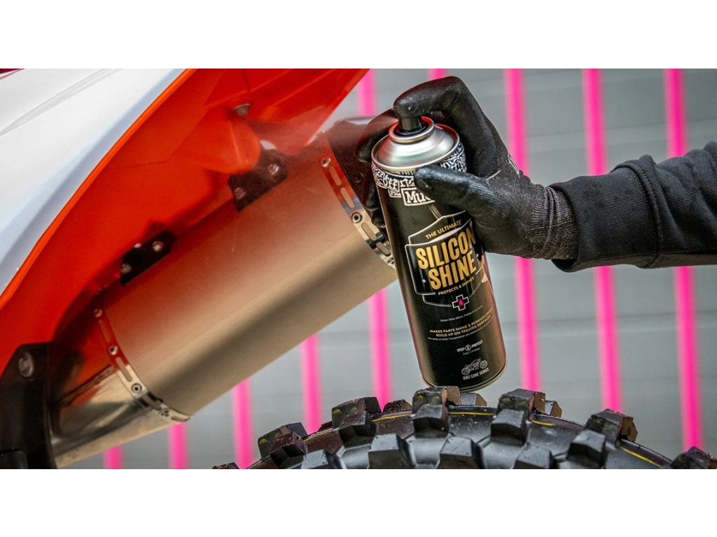 A Silicon Shine nemcsak felfrissíti a motorodat, hanem csökkenti a szennyeződések lerakódását is. Fújd a sárvédők alá, hogy a sár ne tapadjon rájuk, és a következő takarítás is könnyebb legyen! VESZÉLY: Rendkívül tűzveszélyes aeroszol. Nyomás alatt álló tartály. Hő hatására megrepedhet. Bőrirritációt okoz. Álmosságot vagy szédülést okozhat. Mérgező a vízi élővilágra, hosszan tartó károsodást okoz. (R)-p-menta-1,8-diént tartalmaz. Allergiás reakciót válthat ki. Megfelelő szellőzés nélkül robbanékony keverékek halmozódhatnak fel. Gyermekektől elzárva tartandó. JELLEMZŐK: Védi és ragyogó fényt hagy a fém, műanyag és gumi alkatrészeken. Csökkenti a súrlódást a villacsöveken és a hátsó lengéscsillapítókon. A szilikon formula megakadályozza a szennyeződések lerakódását a kezelt felületeken. Csökkenti a jövőbeni tisztítási és karbantartási költségeket.Kiegészítő paraméterek