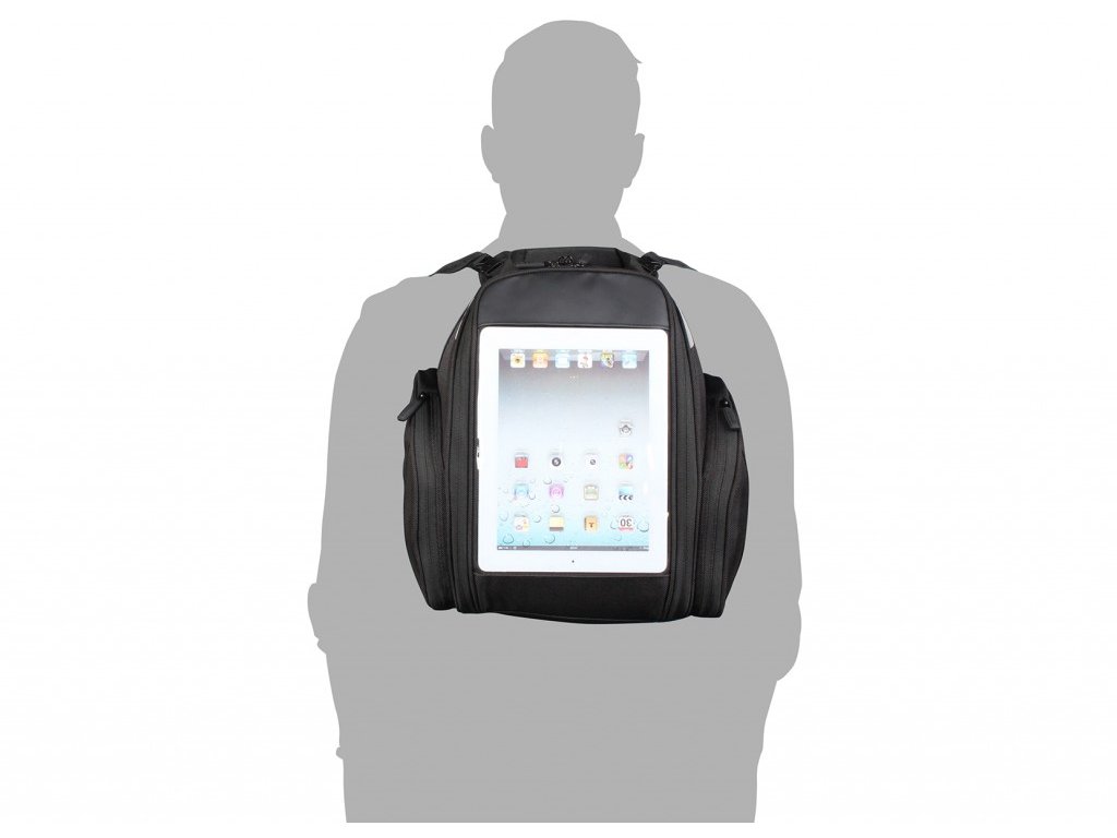 Bővíthető SL20F motoros tanktáska fényvisszaverő elemekkel, amelyek növelik a biztonságot. Tartalmaz egy praktikus felső átlátszó érintőrekeszt térképek, tabletek vagy GPS számára. A csomagban található univerzális rögzítőrendszer segítségével rögzíthető a tankhoz. Termékjellemzők: A fő rész cipzárral van ellátva a fokozott biztonság érdekében. Két oldalsó cipzáras zseb. Felső külön rekesz térképek, tabletek, GPS és érintőképernyők számára. A párnázott fogantyú kényelmesebbé teszi a tanktáska hordozását. A pántoknak köszönhetően hátizsákként is viselhető. Vízálló esőkabát véd az esőtől. Bővíthető: akár 20 literes kapacitással növelhető. Egy sisak is elfér benne. Számos fényvisszaverő elem a fokozott biztonság érdekében. Lyuk USB-kábelnek, amely külön megvásárolható. Kétféleképpen lehet rögzíteni a tankhoz: AZ ÁRBAN TARTALMAZZA: 3 állítható pánt, amelyek a motorkerékpár vázához és a kormányhoz rögzíthetők. OPCIONÁLIS VÁSÁRLÁSRA ELÉRHETŐ: Univerzális rögzítőrendszer (X1SL90). OPCIONÁLIS: 4 levehető mágnes + kormány biztonsági pánt (X1SL11). Aktuális online gyártói katalógus - kattintson ideKiegészítő paraméterek
