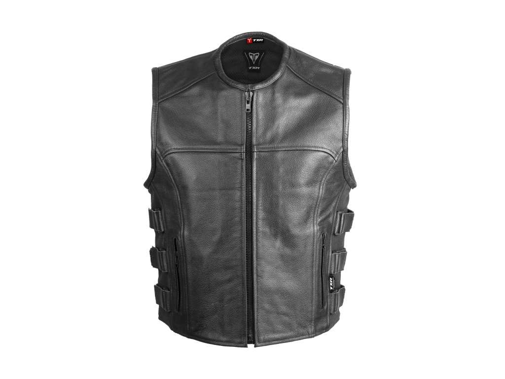 A TXR Shooter motoros bőrmellény 1,1-1,2 mm-es marhabőr anyagával és 100% poliészter hálós bélésével, amely garantálja az ideális levegőkeringést, megnyeri a tetszését. A rögzítést YKK cipzárok biztosítják. 2 külső és 1 belső zseb kisebb tárgyak tárolására is szolgál. Az oldalsó panel nagy szilárdságú sztreccs anyagból készült, melynek köszönhetően a mellény minden alakhoz alkalmazkodik, kabát vagy póló felett is viselhető, a mellény pedig a tépőzáras pánt segítségével állítható. Ez egy jól elkészített motoros mellény a mindennapi viselethez, és minden motoros eredeti tartozéka.