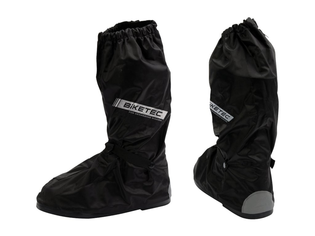 A Biketec fekete esőbakancsok 100%-ban vízálló anyagból készültek, 3M fényvisszaverő elemekkel a jobb láthatóság érdekében.